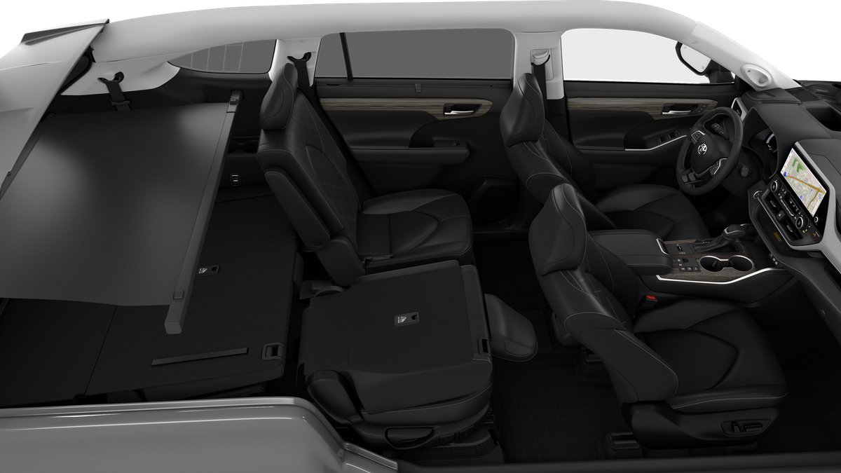 • 7-passenger seating with second-row fold-down captain's chairs and fold-down inboard armrests, adjustable headrests and two cup holders mounted on the floor; and 60/40 split, fold-flat third-row seats with sliding headrests and recline function