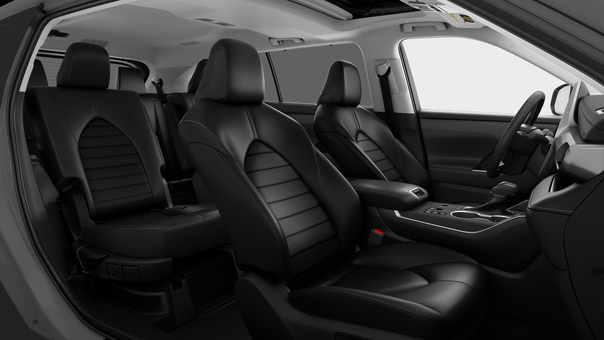• 7-passenger seating with second-row fold-down captain's chairs and fold-down inboard armrests, adjustable headrests and two cup holders mounted on the floor; and 60/40 split, fold-flat third-row seats with sliding headrests and recline function