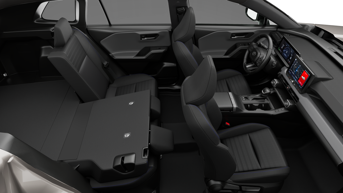 • 60/40 split reclining fold-flat rear seat with center armrest and cup holders